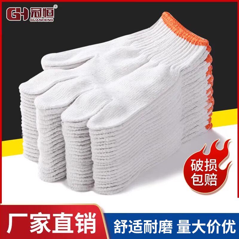 手套工作劳保耐磨棉线黑白纱棉纱防滑尼龙劳工劳动男工地干活轻薄