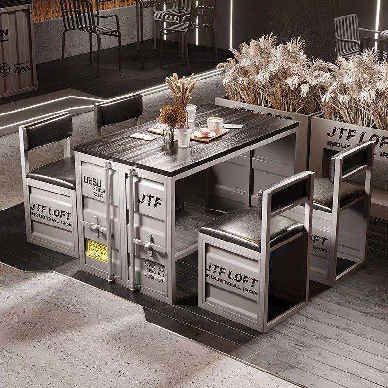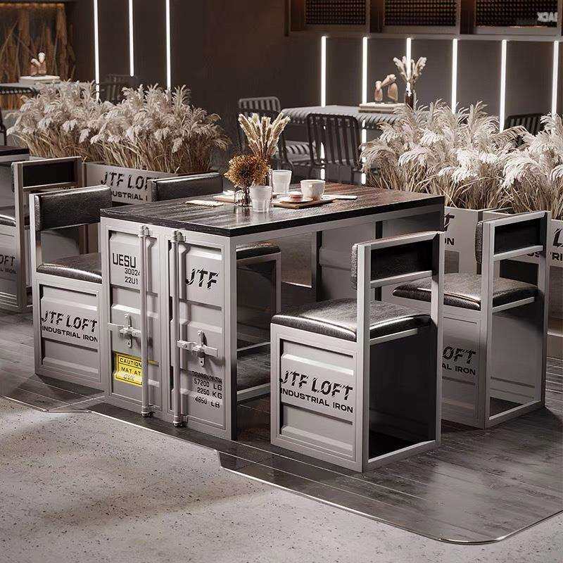 工业风实木双人沙发桌椅子奶茶烧烤店咖啡厅酒店洽谈网红酒吧卡座