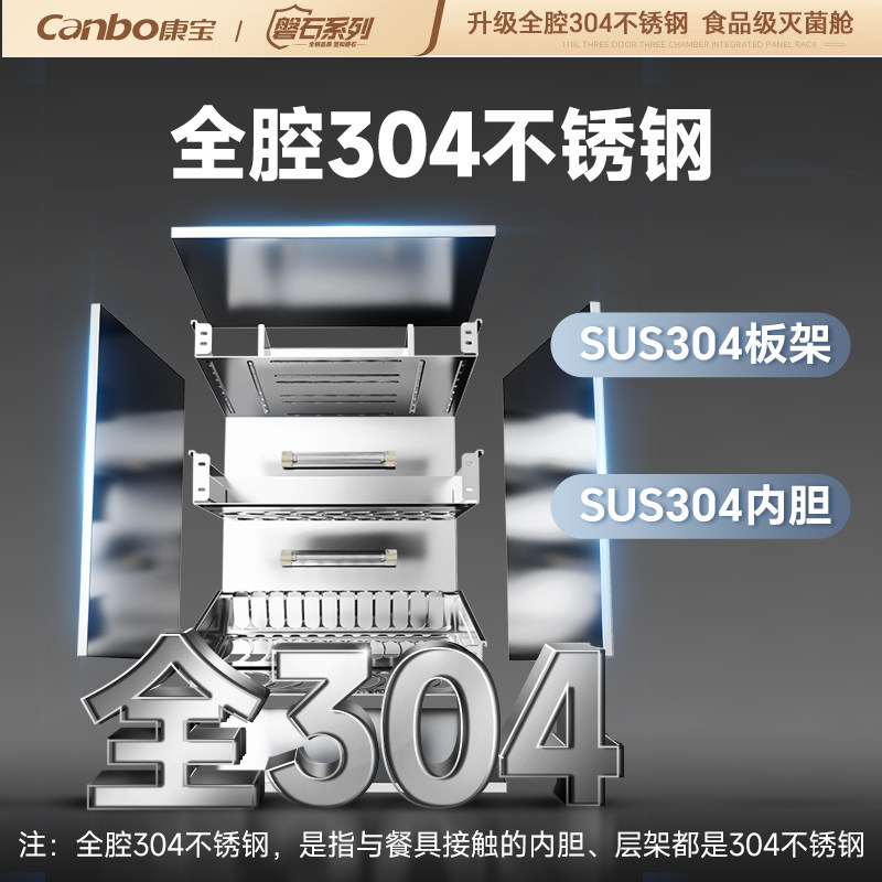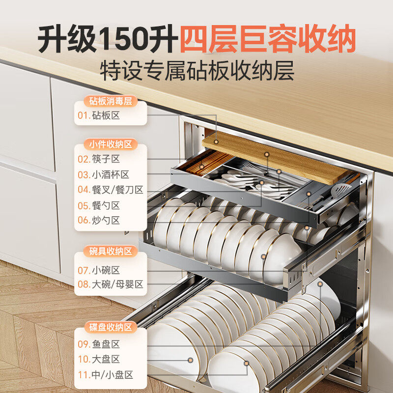 康宝嵌入式消毒柜家用热风母婴碗筷餐具全二星304不锈钢消毒碗柜