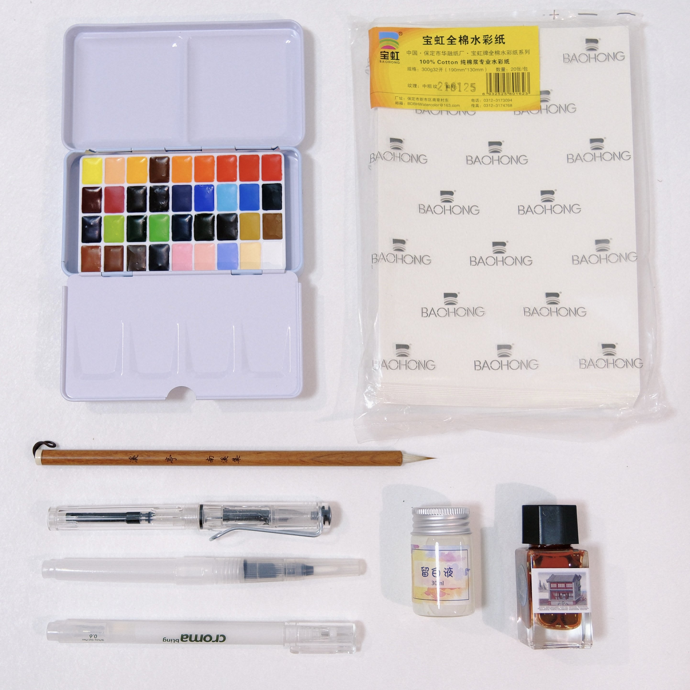 LittleJiang零基础钢笔淡彩入门系统课程水彩颜料荷尔拜因画材包