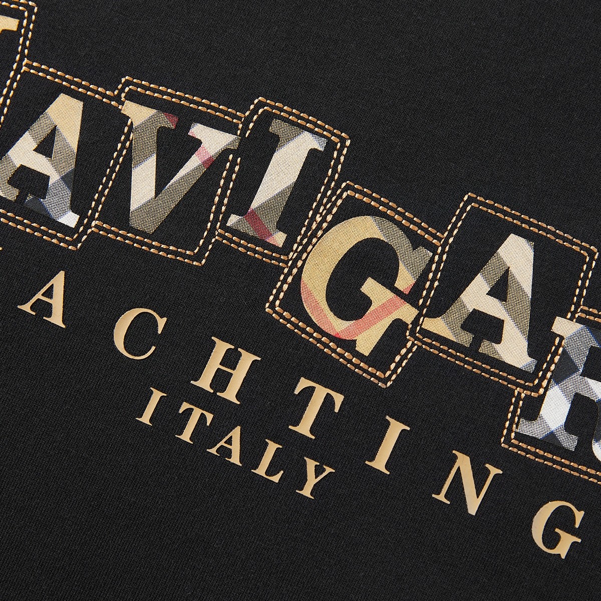 Navigare意大利小帆船黑色圆领短袖卫衣男夏季休闲弹力t恤上衣