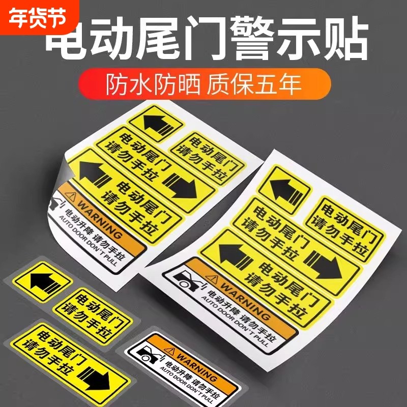 电动尾门警示贴请勿手拉电动升降门汽车贴纸电动升举门提示贴防水
