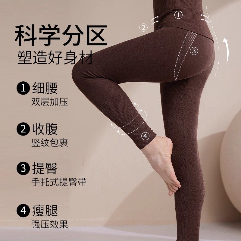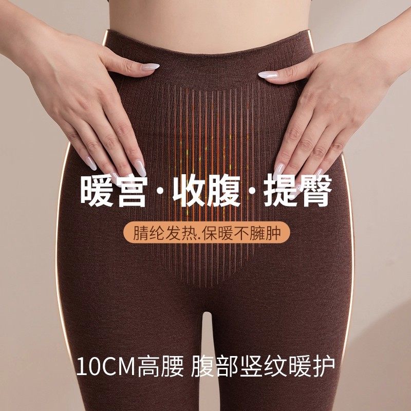 羊毛蚕丝秋裤女加厚加绒德无痕发热高腰保暖裤女羊毛棉裤打底裤冬