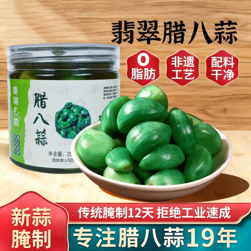 正宗山东绿蒜翡翠腊八蒜金乡糖醋泡蒜腌制大蒜头500g坛装下饭菜