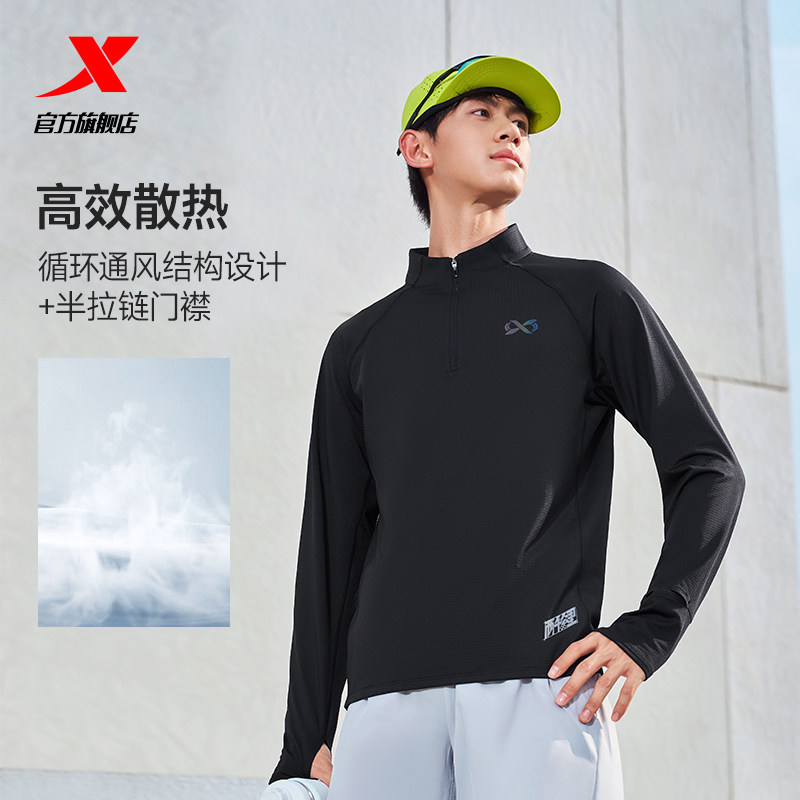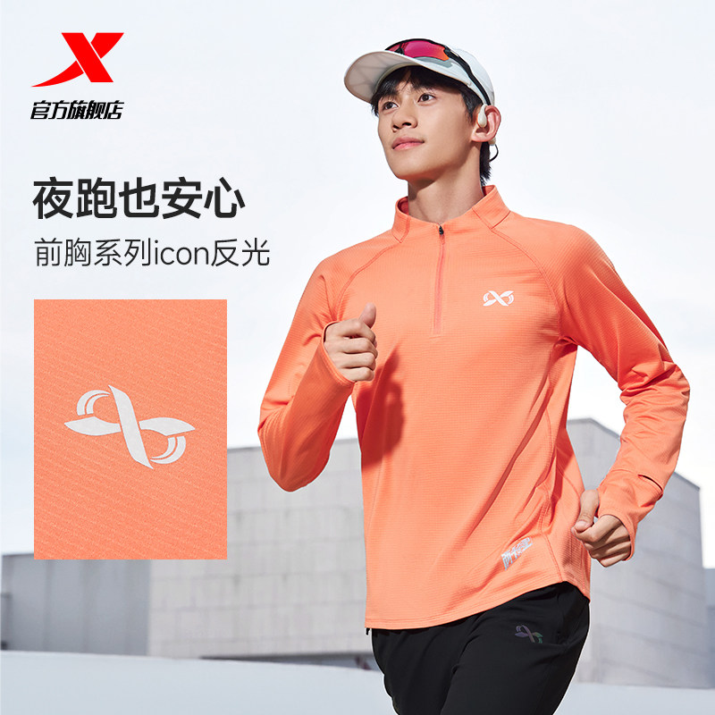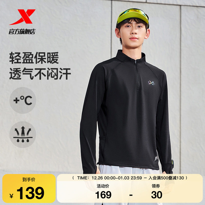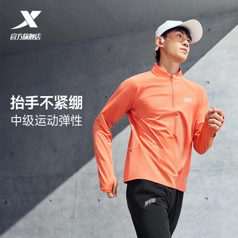 特步两千公里系列长袖t恤男款秋新款透气运动加绒健身跑步训练服
