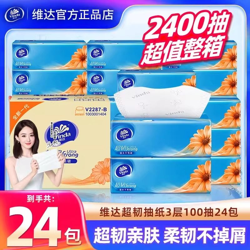 【爆卖100万件】维达抽纸超韧3层120抽20包整箱家用家庭实惠餐纸