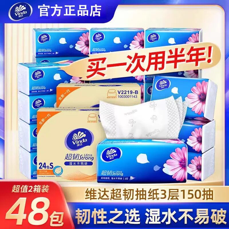维达抽纸餐巾纸纸巾卫生纸大包批发超韧150抽家用整箱实惠面巾纸