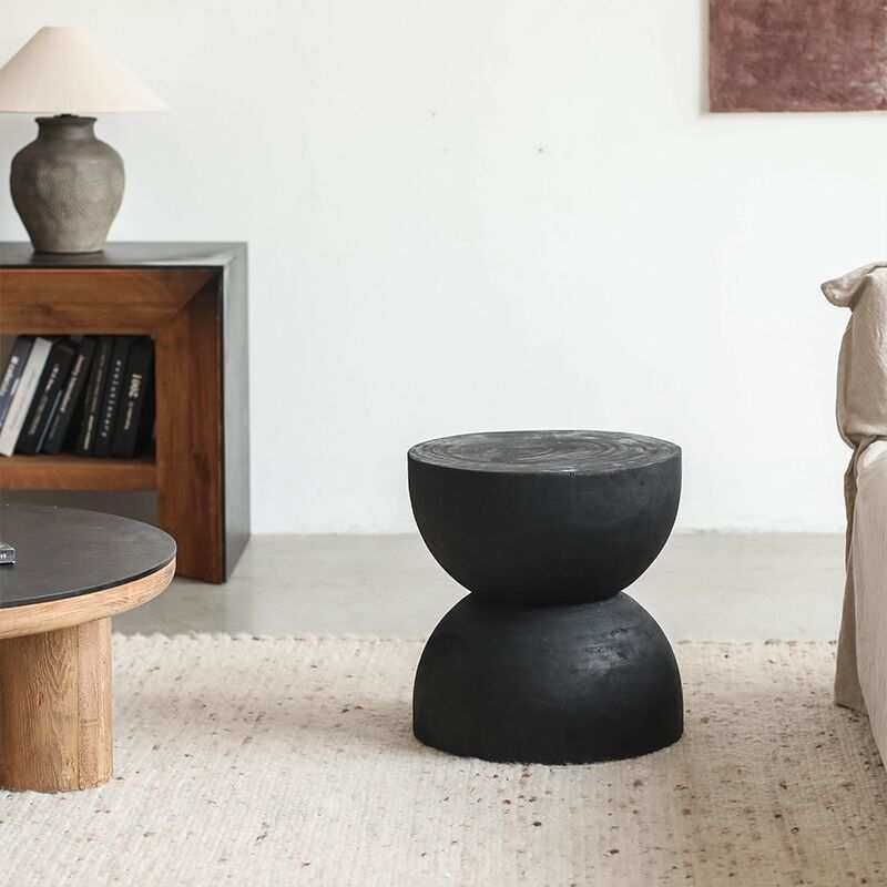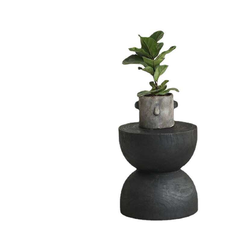 侘寂风炭黑色漏斗型小边几民宿装饰凳子复古客厅实木创意沙发茶几