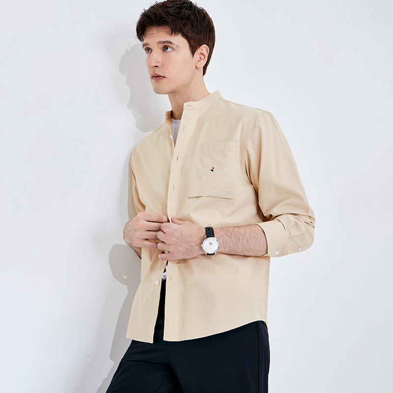 Navigare意大利小帆船卡其色工装衬衫男长袖秋季休闲宽松衬衣外套
