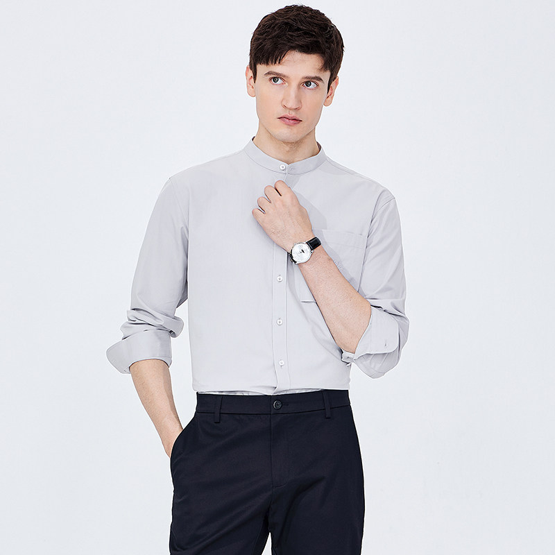 【清仓】杉杉品牌男士长袖衬衫纯色2025春季新款休闲免烫纯棉衬衣