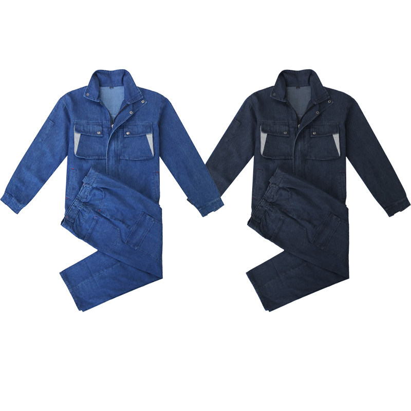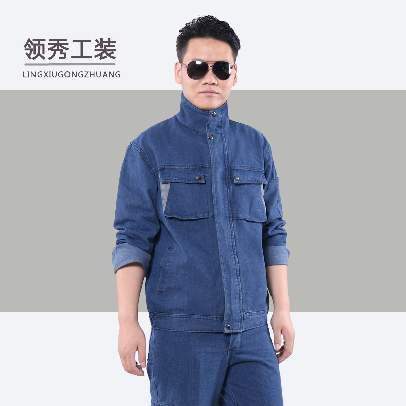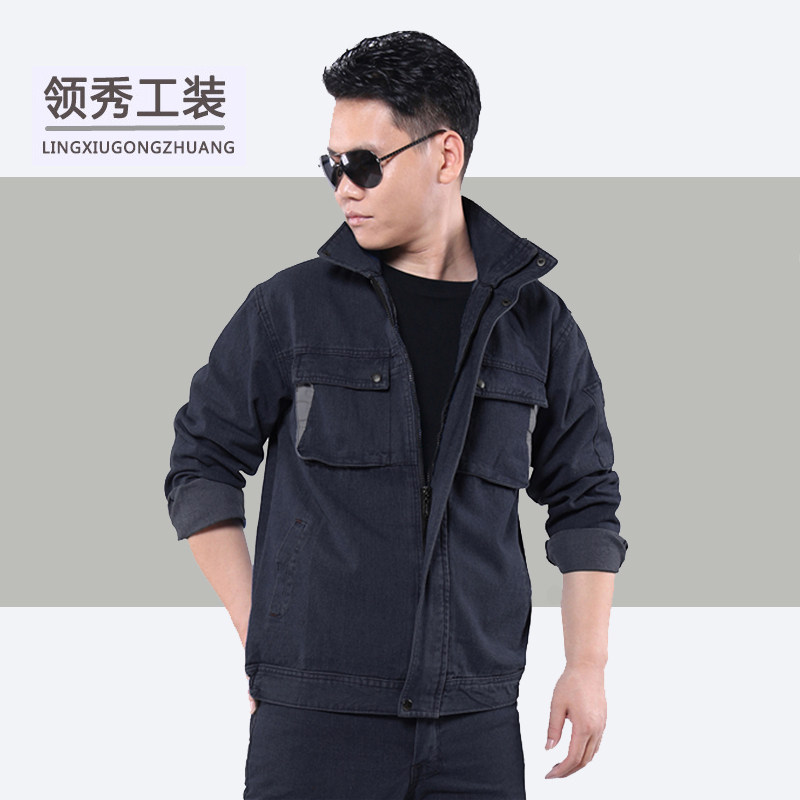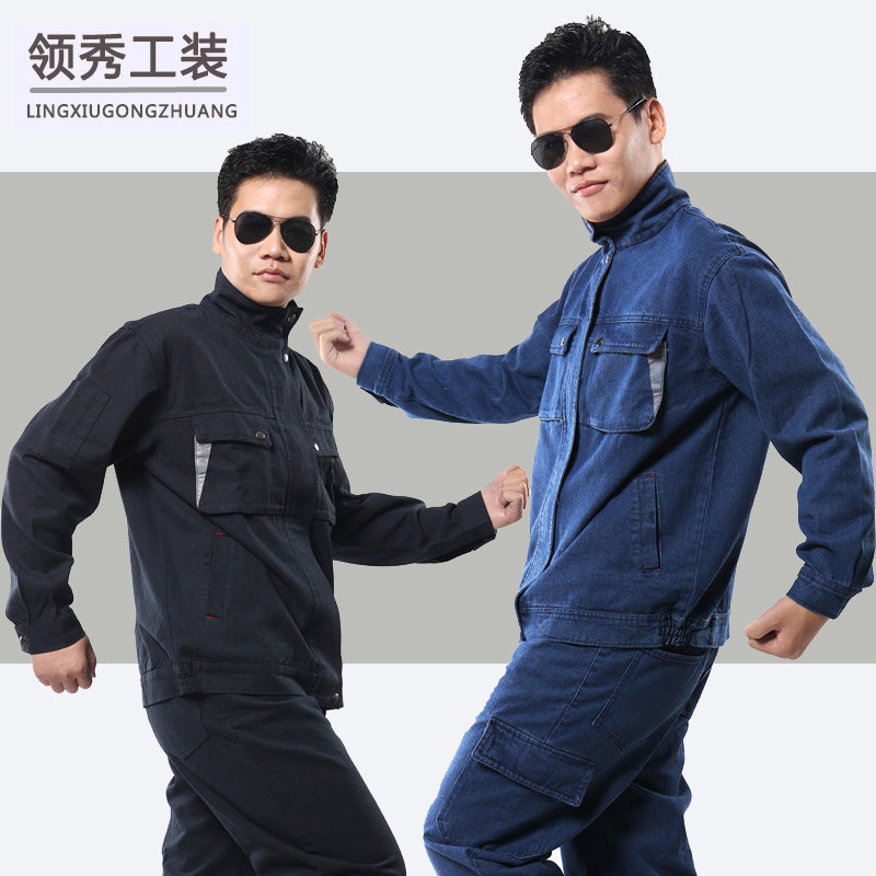 立领牛仔工作服套装男电焊工纯棉耐磨耐烫工装厂服工人焊工劳保服