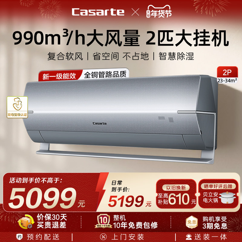 政府补贴卡萨帝空调挂机变频家用卧室除湿冷暖省空间风量新1级2匹