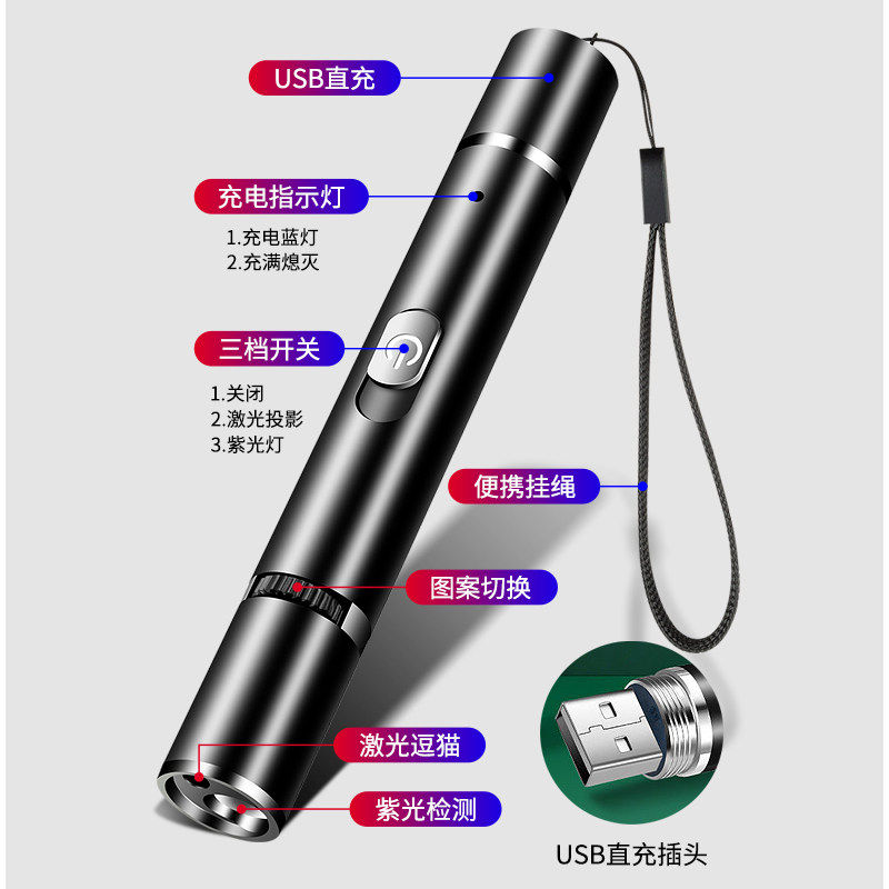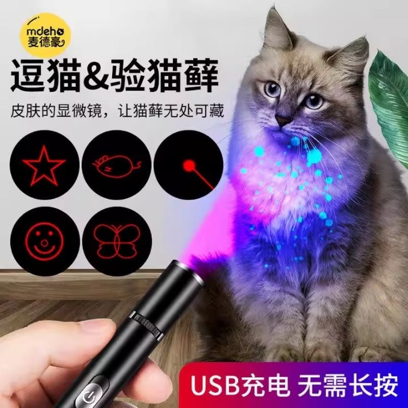 激光逗猫棒伍德氏紫光检测宠物猫藓红外线手电激光笔宠物专用玩具