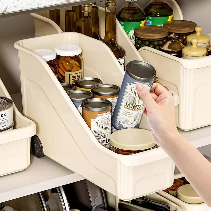 厨房锅具收纳盒整理盒调料带滑轮下水槽橱柜收纳多功能收纳架杂物
