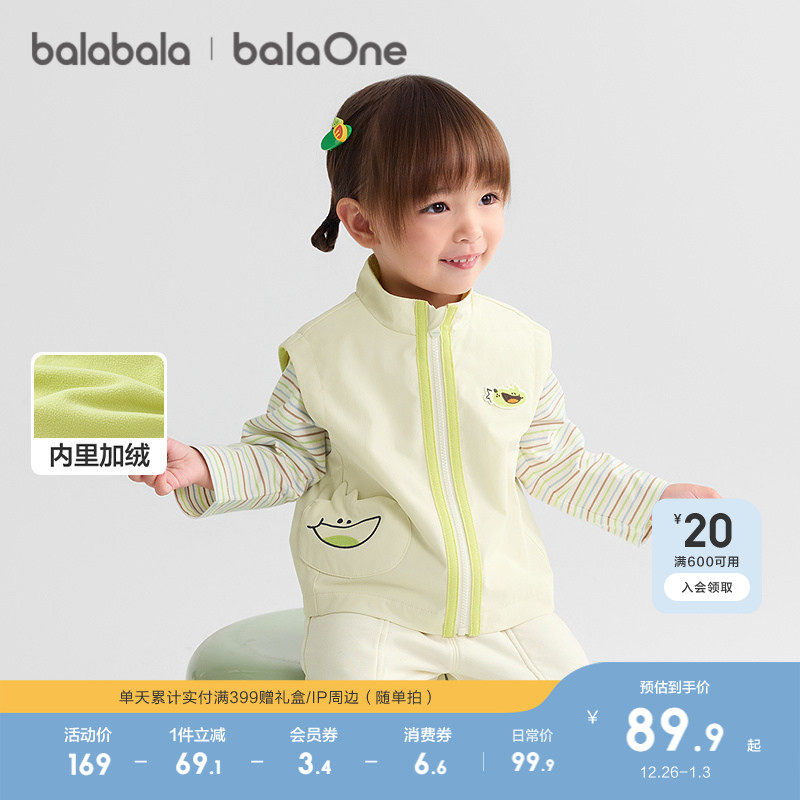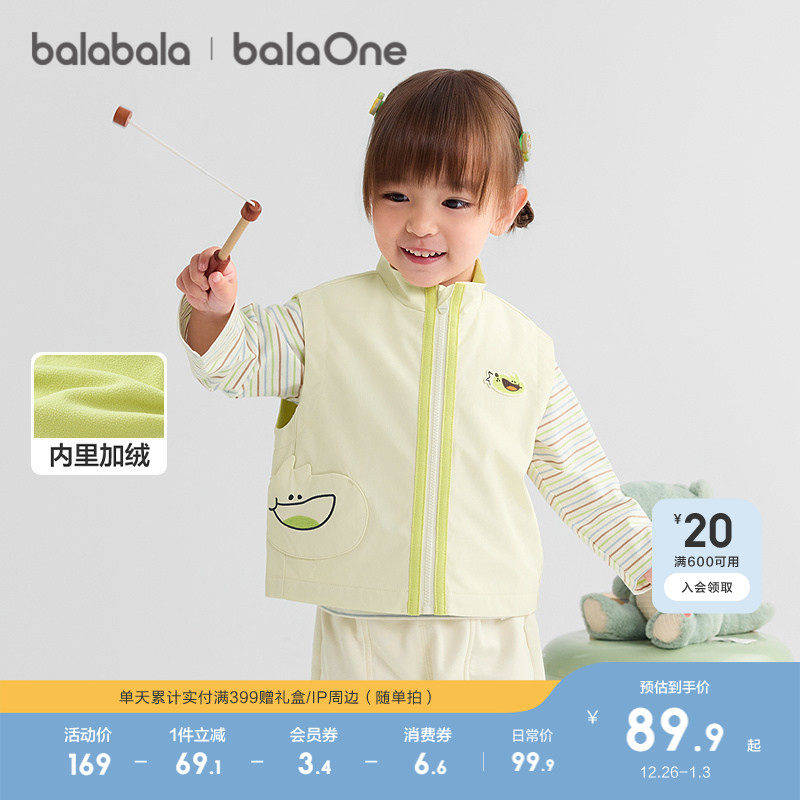 巴拉巴拉童装宝宝马甲女童背心男童2025新款秋装防泼水加绒上衣潮