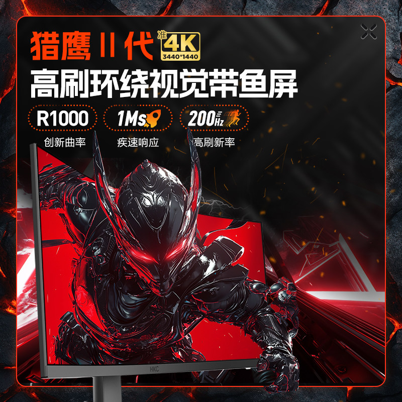 HKC显示器34英寸准4K电竞200HZ大曲面带鱼屏电脑宽屏幕CG343UPro