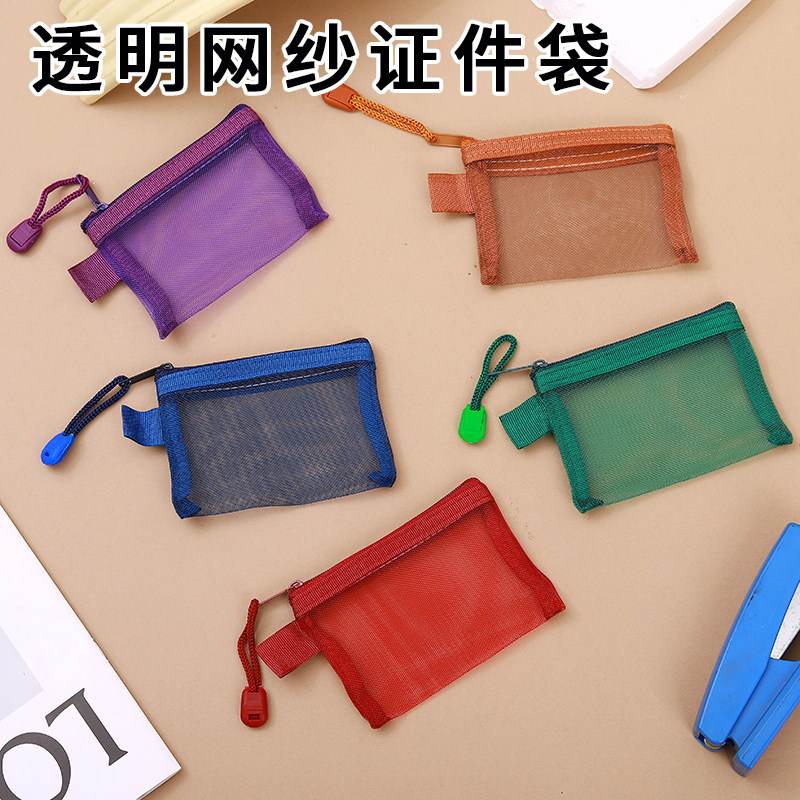 透明网纱证件袋迷你便携收纳袋卡片收纳小包拉链零钱包多用途证件收纳袋小卡包学生随身银行卡便携式随身携带