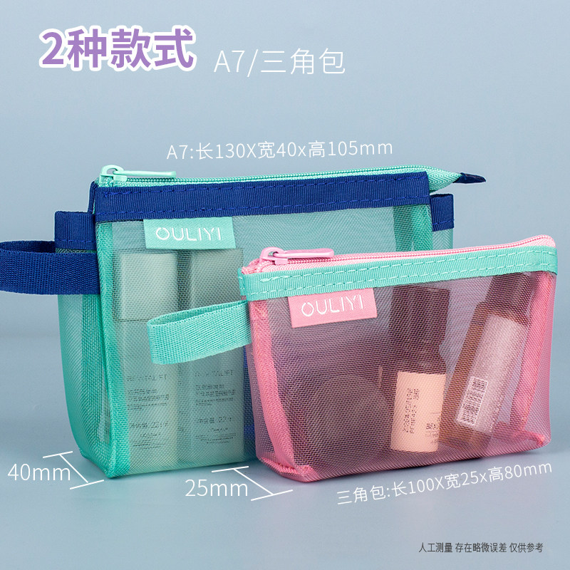 欧力益收纳小号便携简约迷你透明学生网纱透视卡片证零钱袋a7多功能大容量尼龙化妆品旅行装拉链整理包