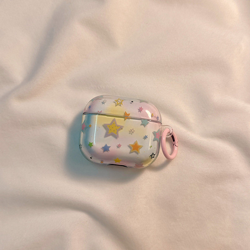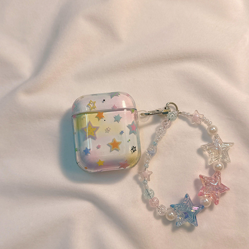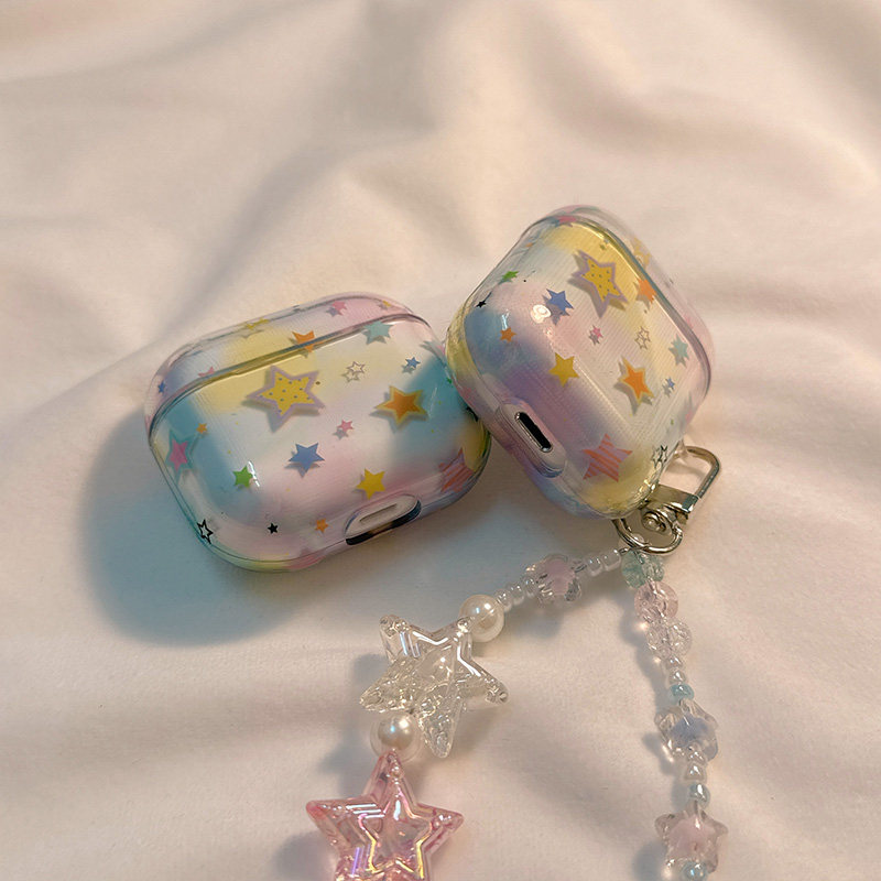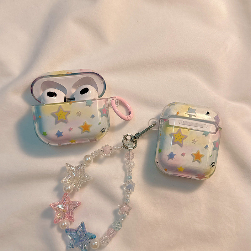 韩系ins晕染彩色星星适用AirPods保护套新款iPod苹果耳机壳带链条1/2代无线蓝牙3代airpodspro2代防摔保护壳