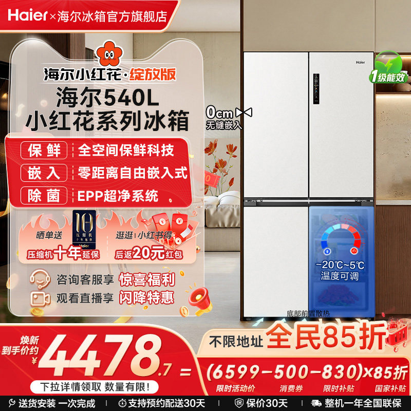 海尔冰箱以旧换新补贴小红花540L十字门零嵌入式冰箱家用一级官方