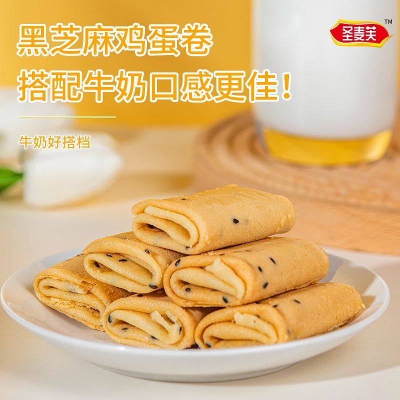 芈兔虎皮卷海苔咸蛋黄味黑金夹心鸡蛋卷饼干办公室零食小包装整箱