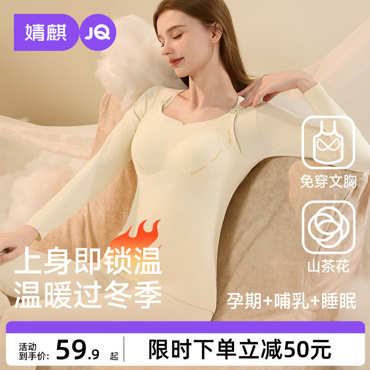 婧麒孕妇秋衣秋裤套装保暖内衣孕期打底产后哺乳喂奶大码月子服冬