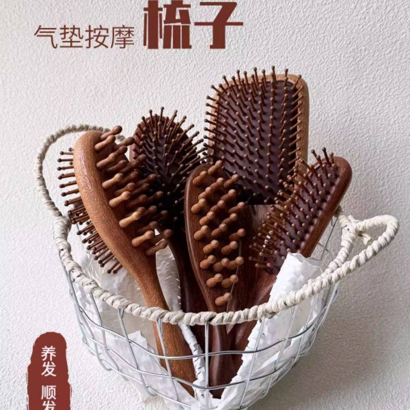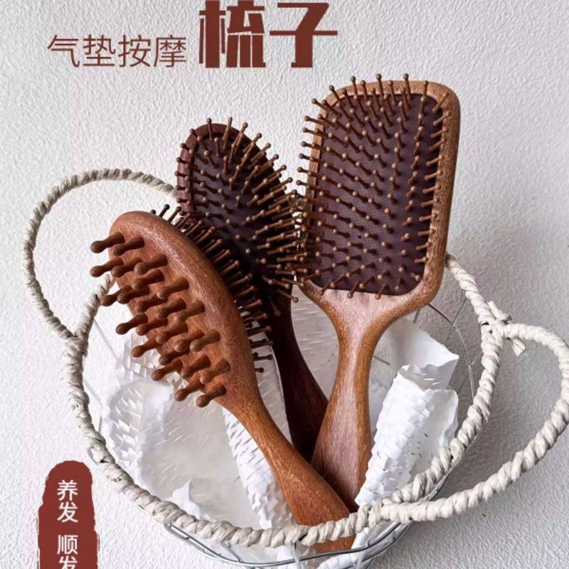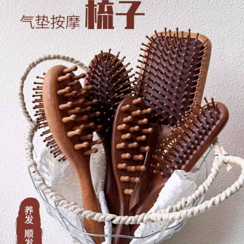 ITSHEYDC金丝檀木气垫梳子养发顺发经络按摩实木梳卷发便携随身