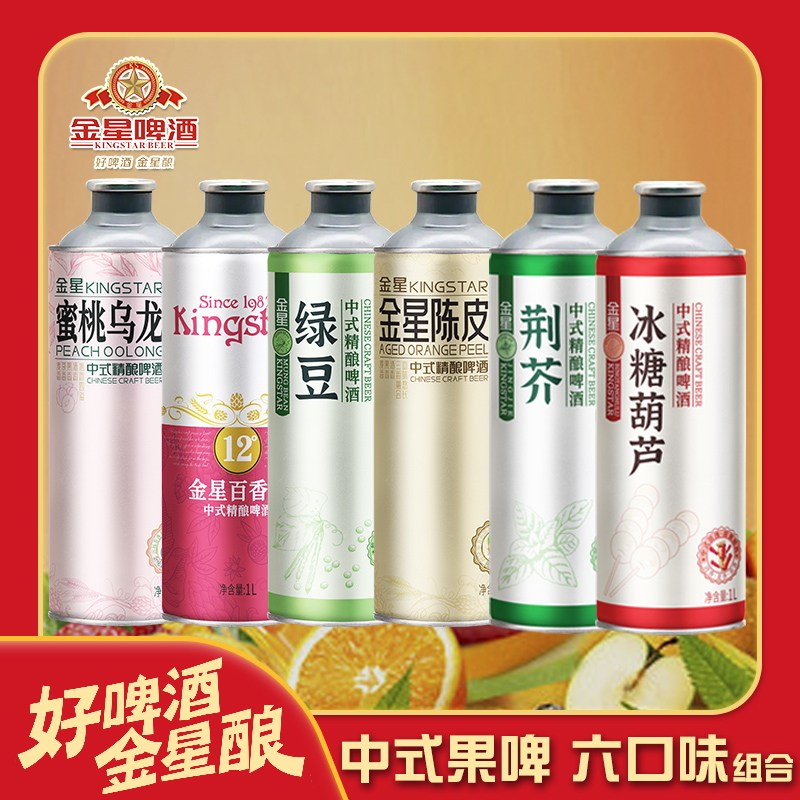 金星龙井绿茶精酿啤酒百香果茉莉花茶毛尖1L*6瓶冰糖葫芦柠檬海盐