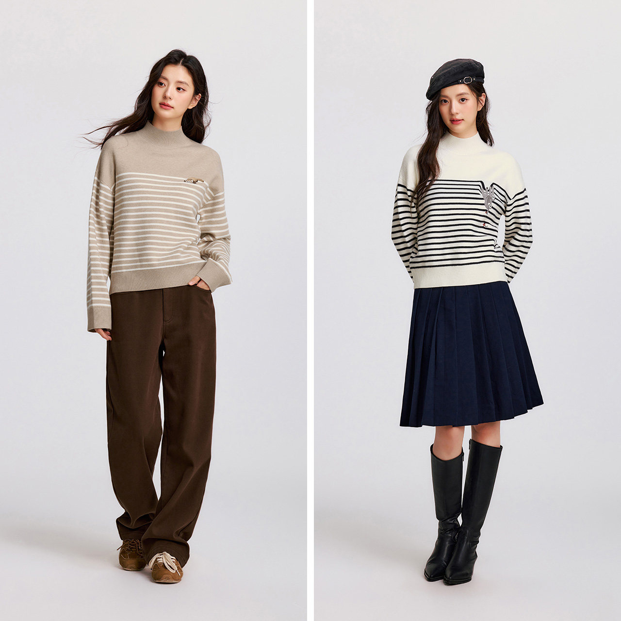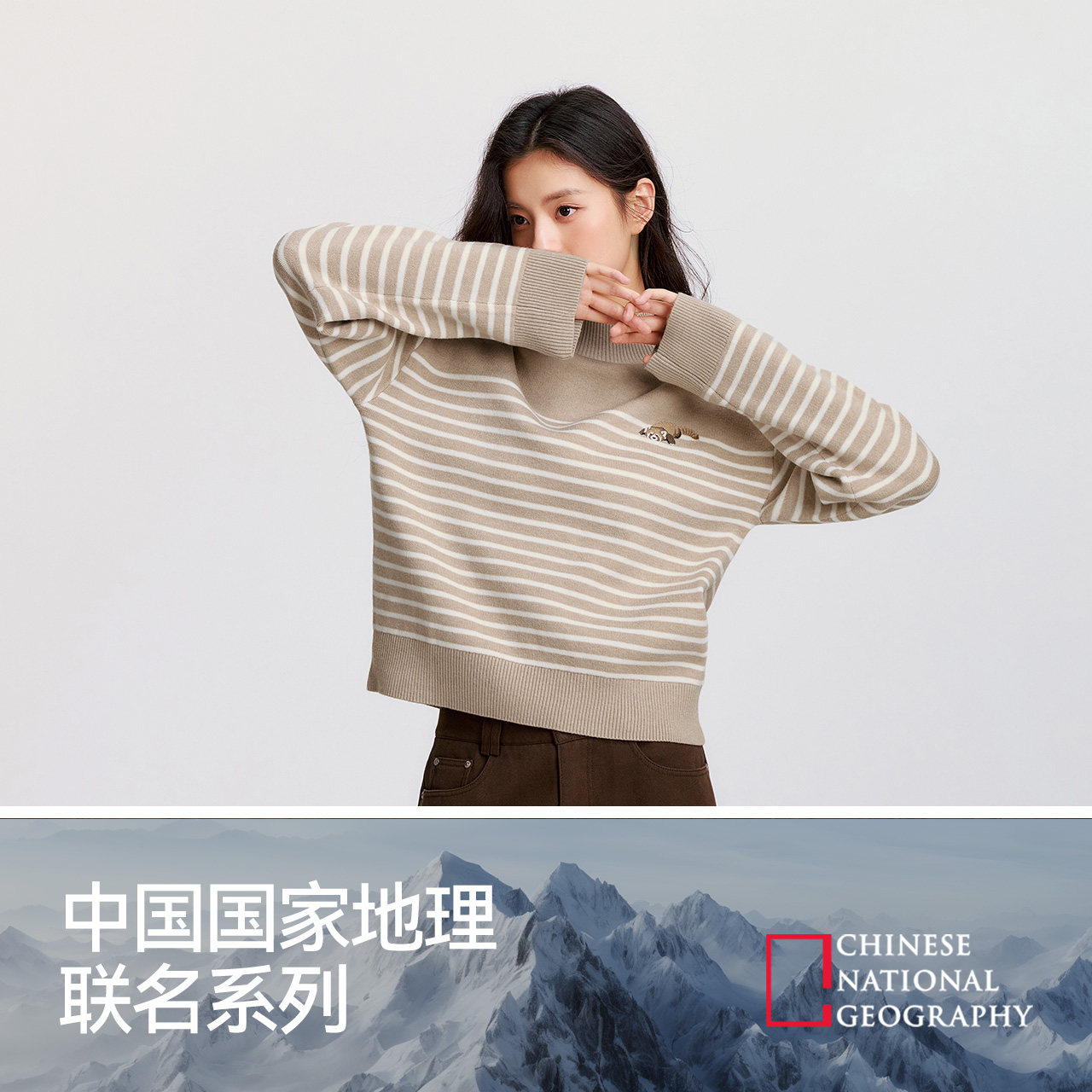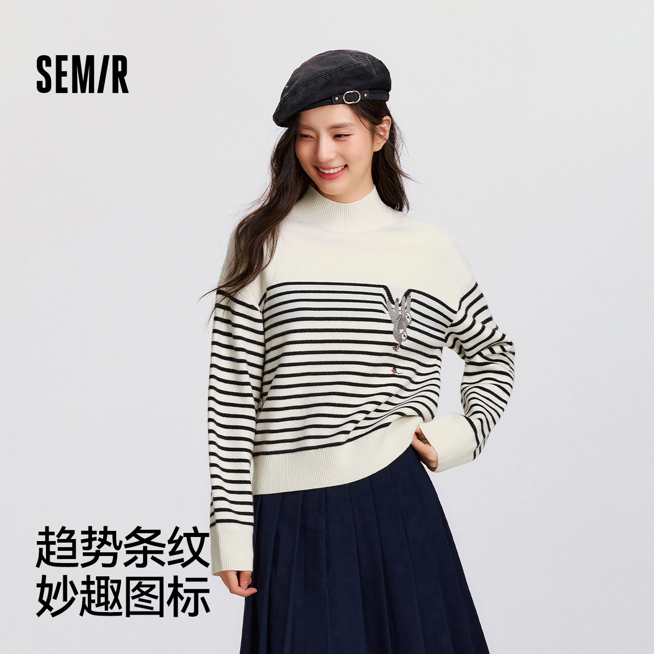 森柔|森马中国国家地理系列毛衣女冬季半高领刺绣条纹衫休闲毛衫