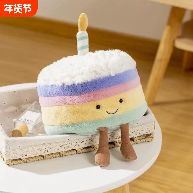 彩虹蛋糕毛绒玩偶创意卡通儿童毛绒玩具生日礼物家居装饰摆件