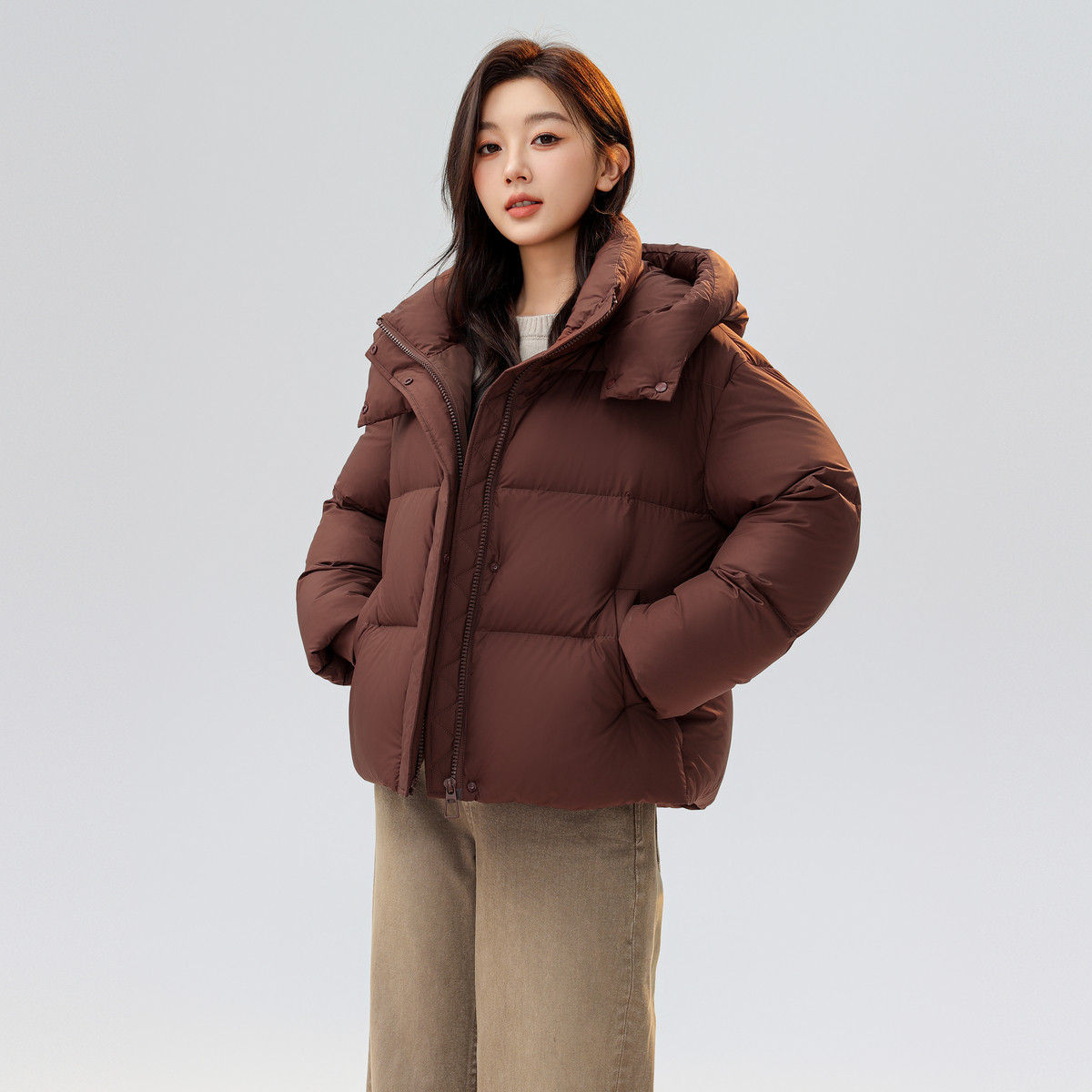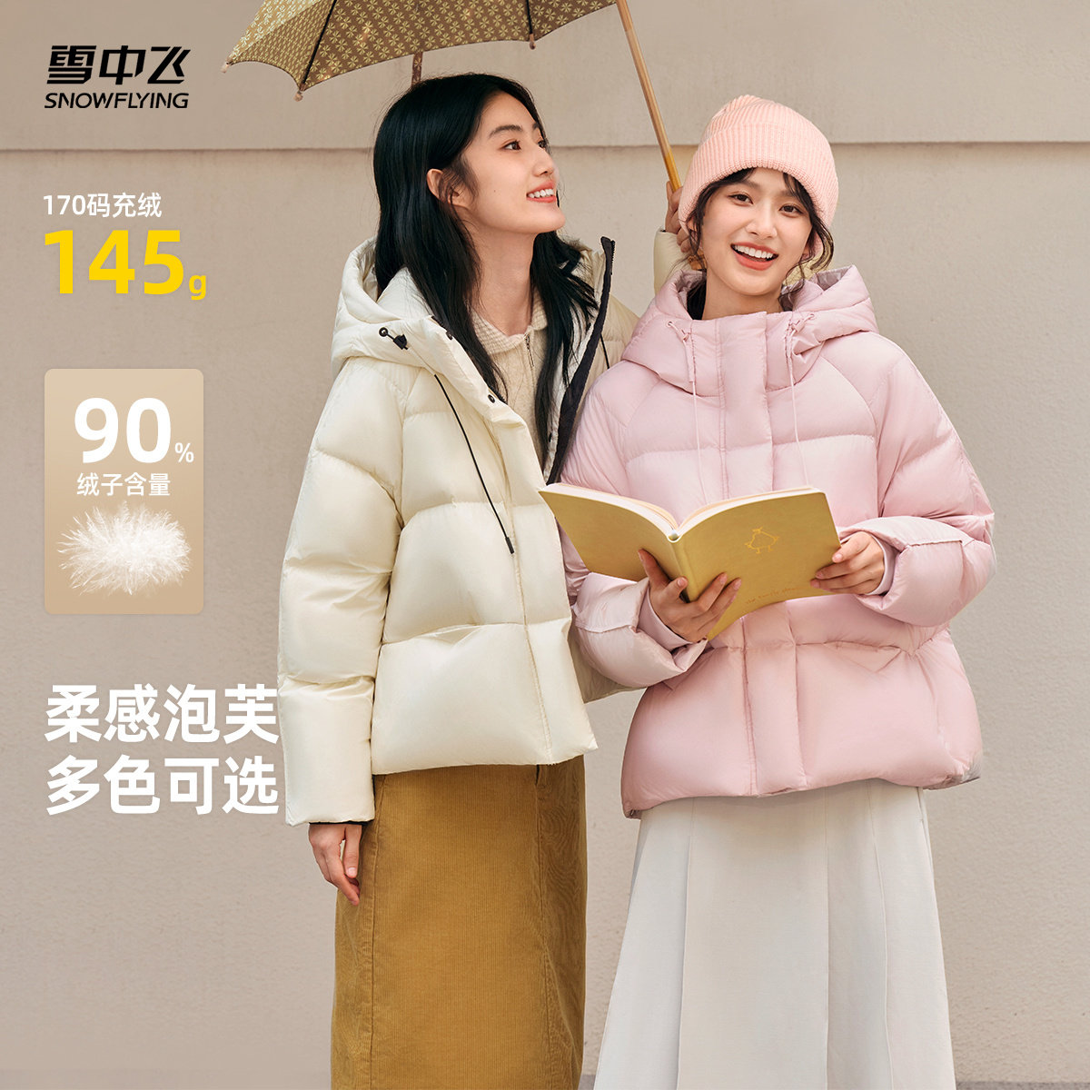 雪中飞2025冬新款短款羽绒服女小个子款泡芙通勤时尚简约面包服
