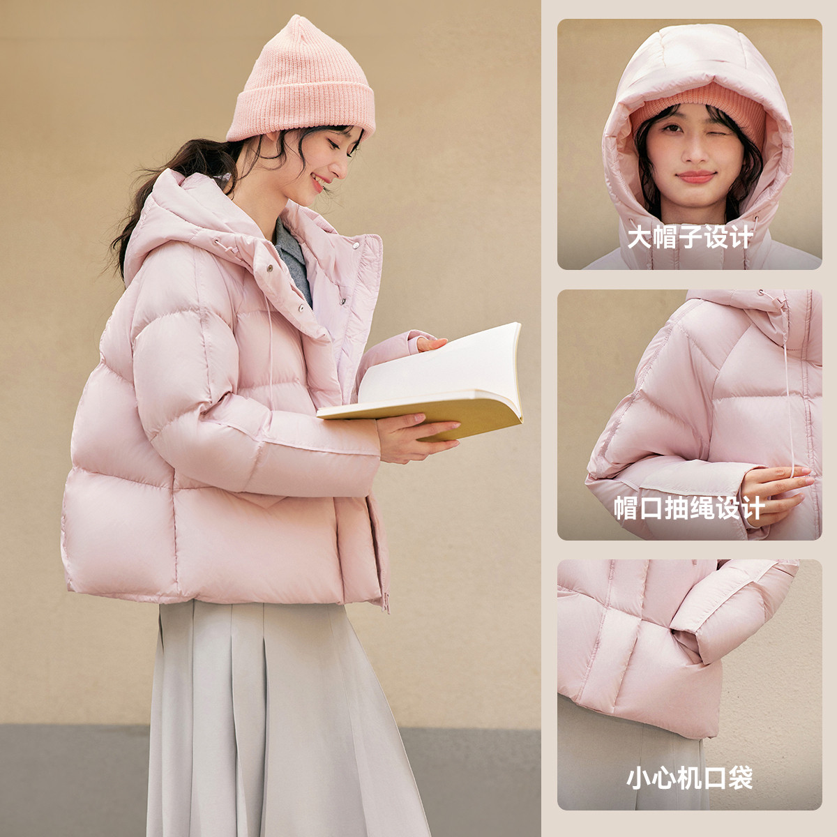 鸭鸭2025秋冬新款立领短款羽绒服小个子女冬多巴胺连帽可拆帽外套