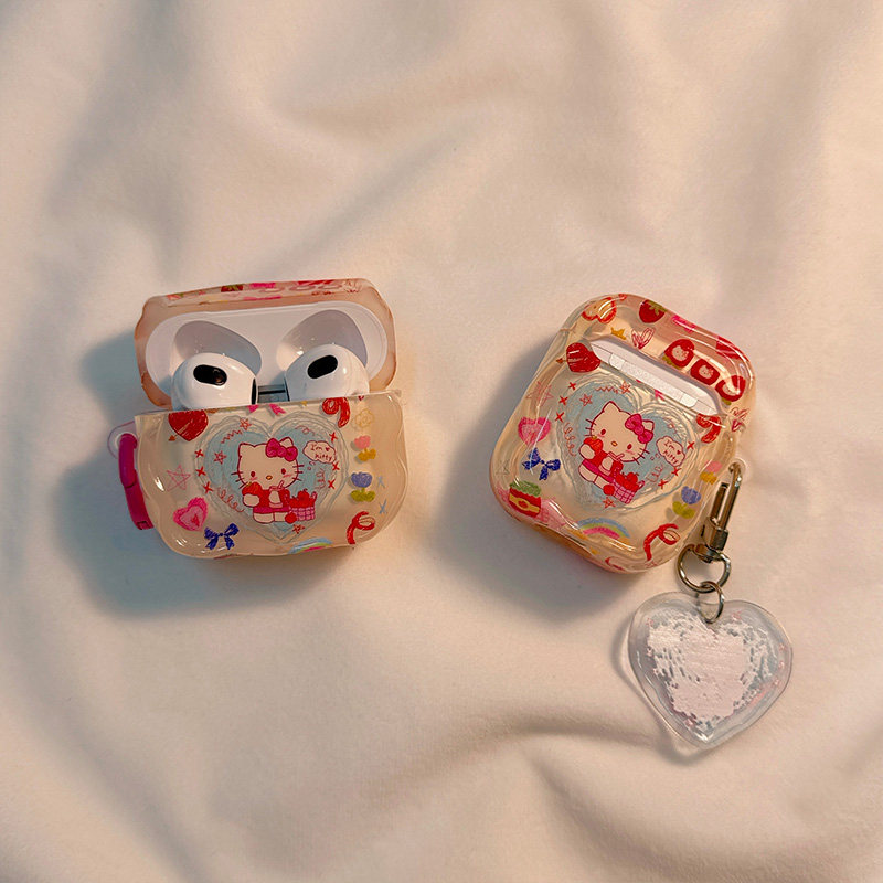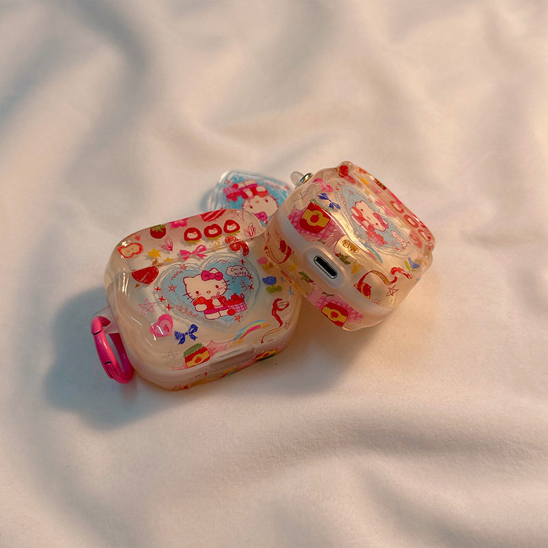 复古涂鸦爱心kt猫适用AirPods4保护套新款iPod苹果耳机壳日韩1/2代无线蓝牙盒3代airpodspro2代软防摔保护壳