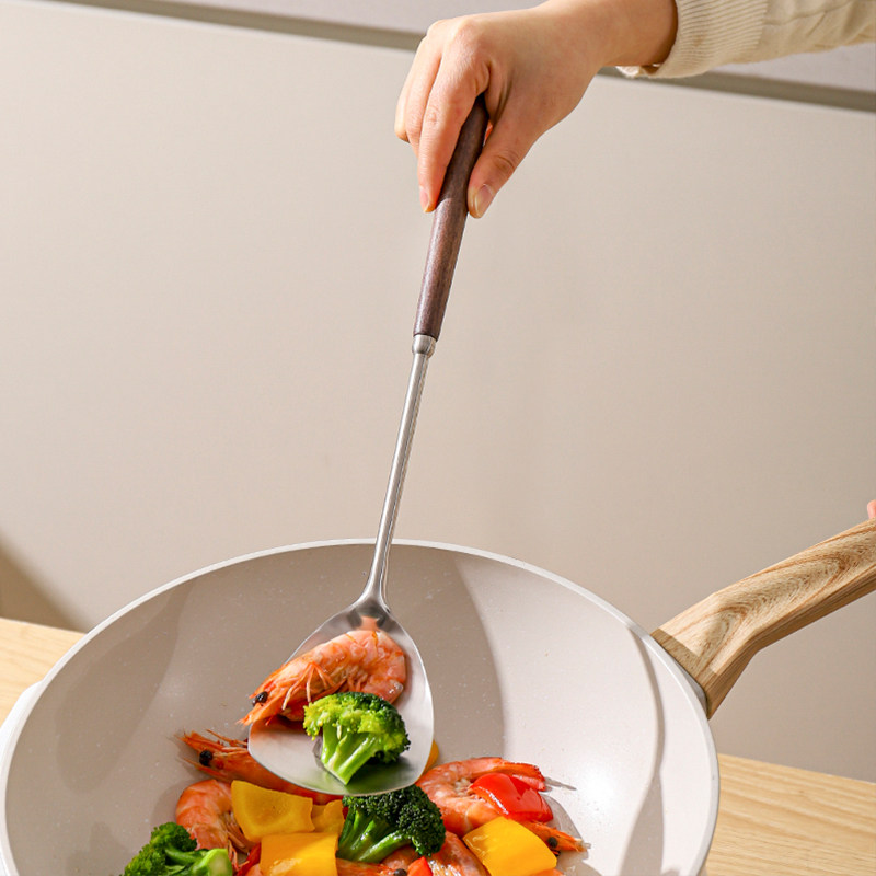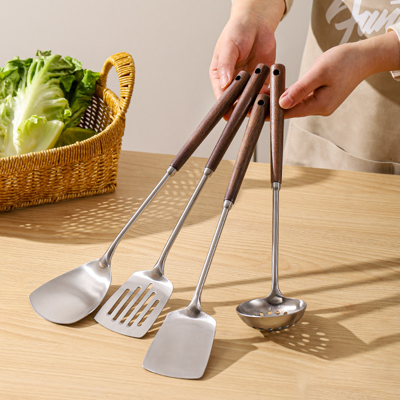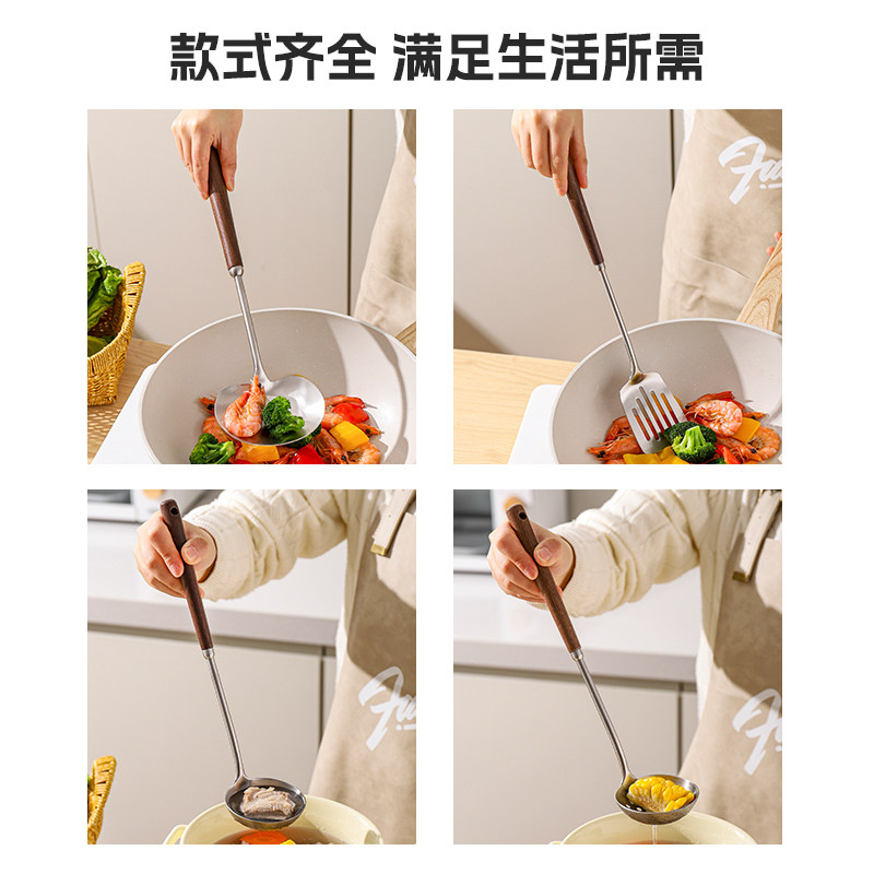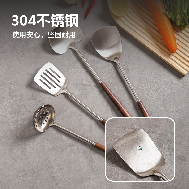 川岛屋不锈钢锅铲家用炒勺炒菜的铲子汤勺漏勺煎铲木柄把厨具套装