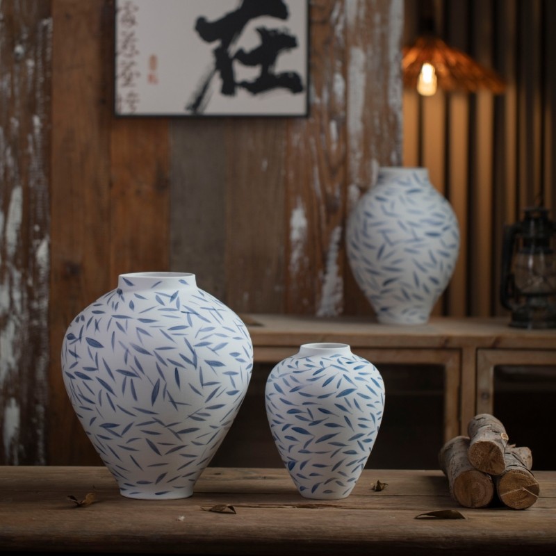 景德镇新中式复古手绘陶瓷花瓶蓝白水培花器客厅玄关桌面装饰摆件