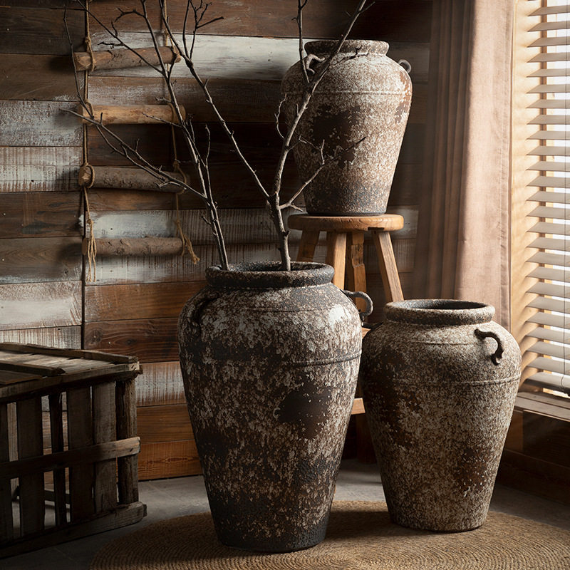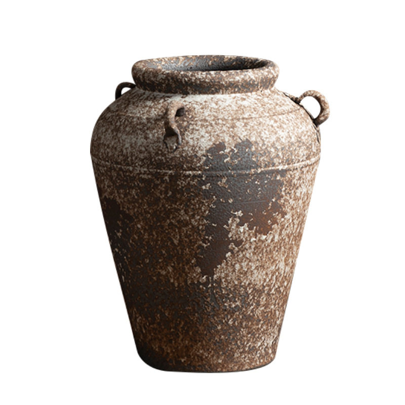 景德镇侘寂风落地花瓶斑驳耳朵款粗陶摆件客厅酒店民宿复古装饰品