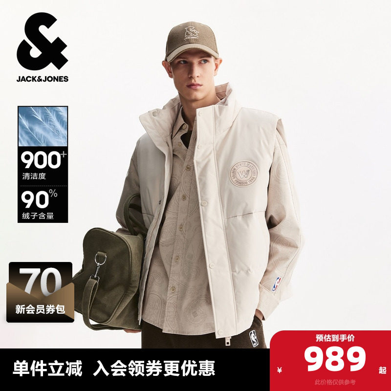 杰克琼斯奥特莱斯NBA联名2025年冬季新款男装立领羽绒马甲上衣