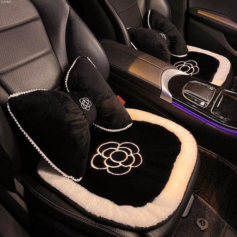 汽车坐垫冬季毛绒山茶花女神加热单片后排座垫车载四季通用车垫女