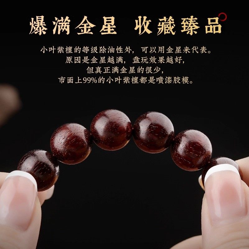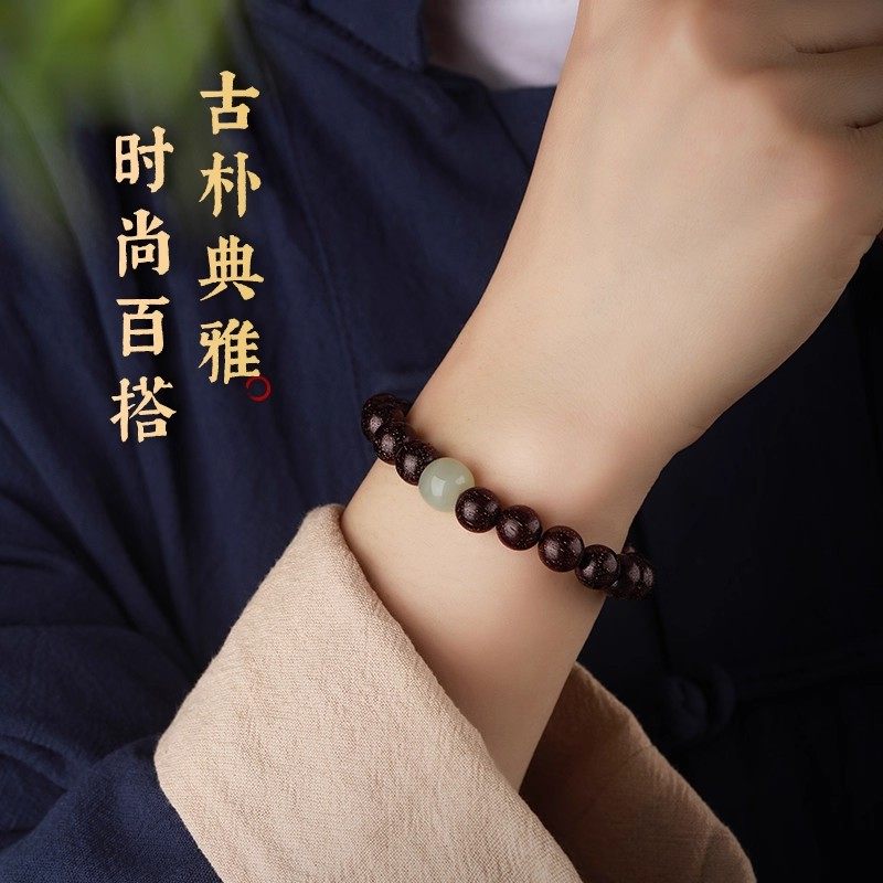 小叶紫檀木和田玉手串满金星真品男士女款佛珠念珠文玩盘玩男款