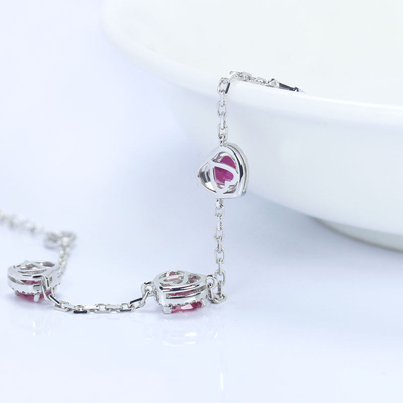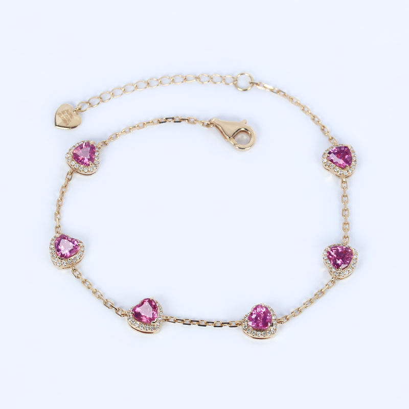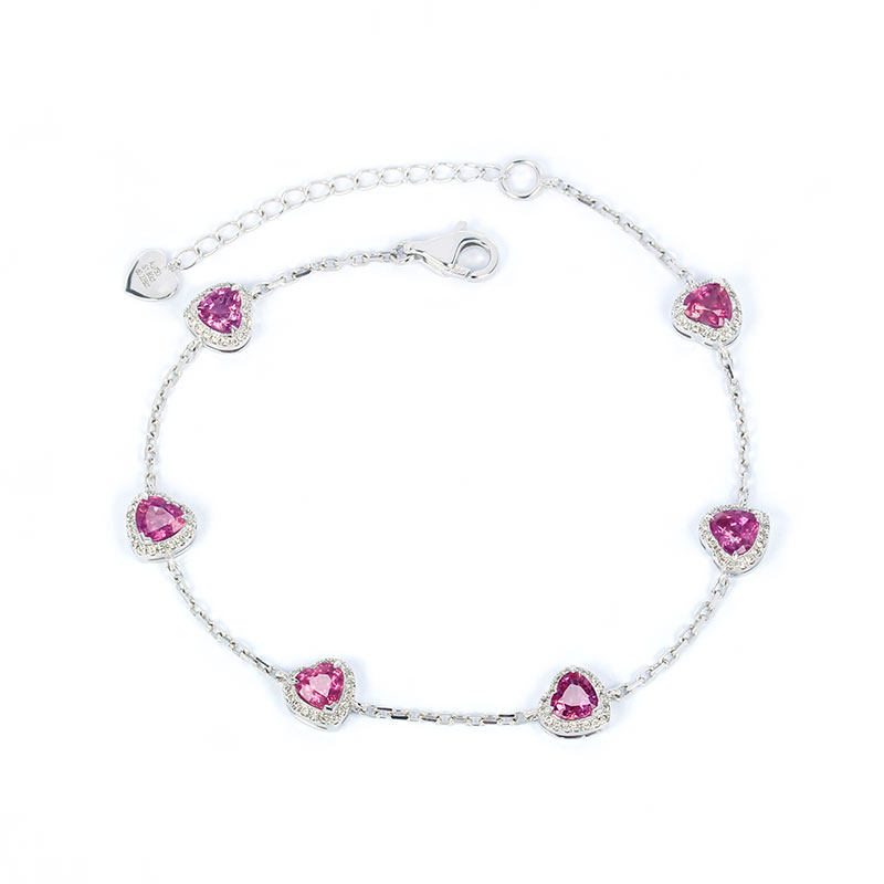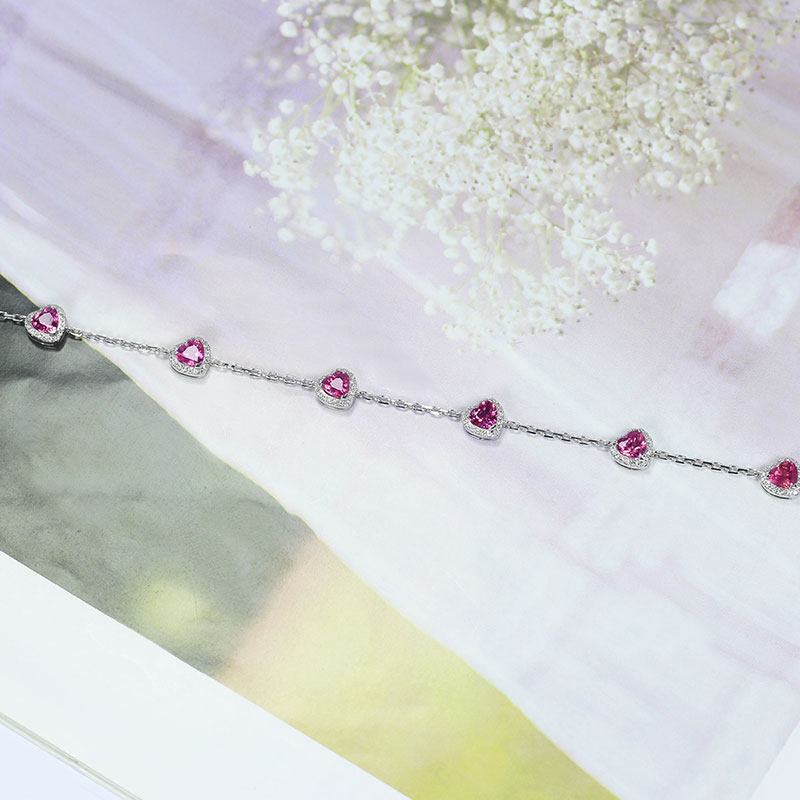 18K白金天然心形粉色蓝宝石满圈手链 帕帕拉恰镶钻石手饰女款正品