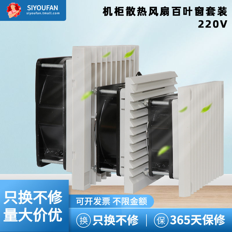 工业机柜220V通风过滤网组电箱控制柜电柜散热风扇套装百叶窗风机