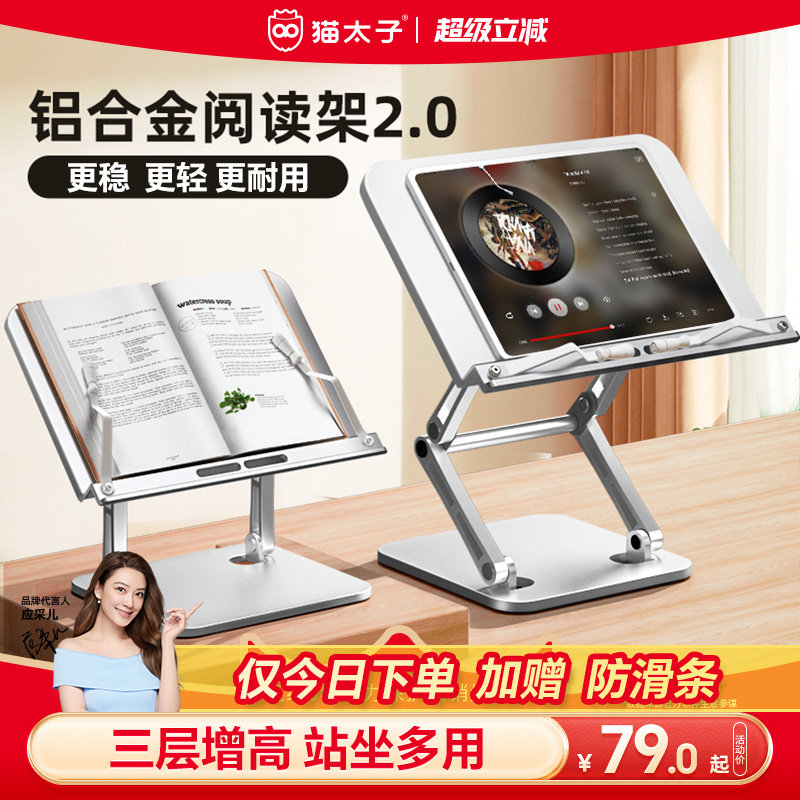 猫太子铝合金书架阅读架多功能阅读支架神器看书读书架子儿童可升降床上阅读书架小学生桌面绘本书夹书本立架