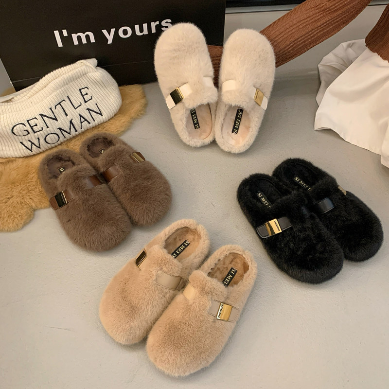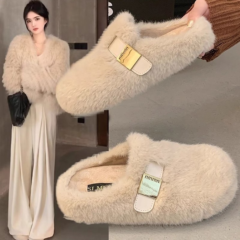 水貂毛厚底毛毛拖鞋女外穿2024新款冬季一脚蹬懒人包头半拖鞋棉拖
