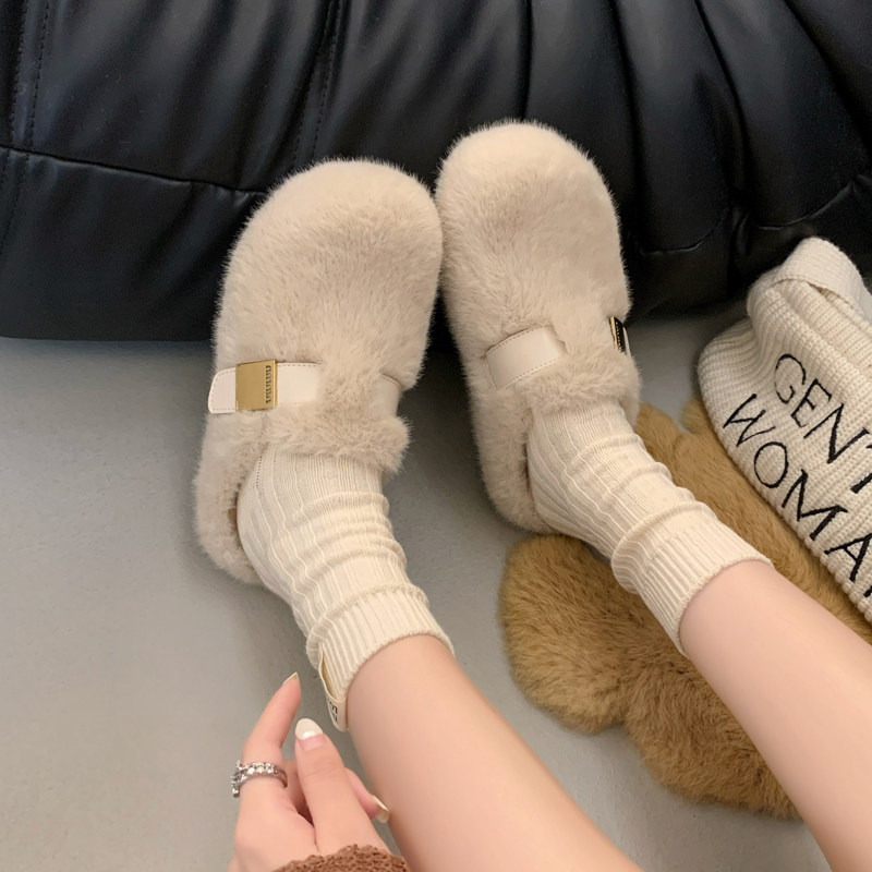 周雨彤同款厚底勃肯鞋女2025新款冬季加绒半拖鞋外穿增高穆勒鞋子
