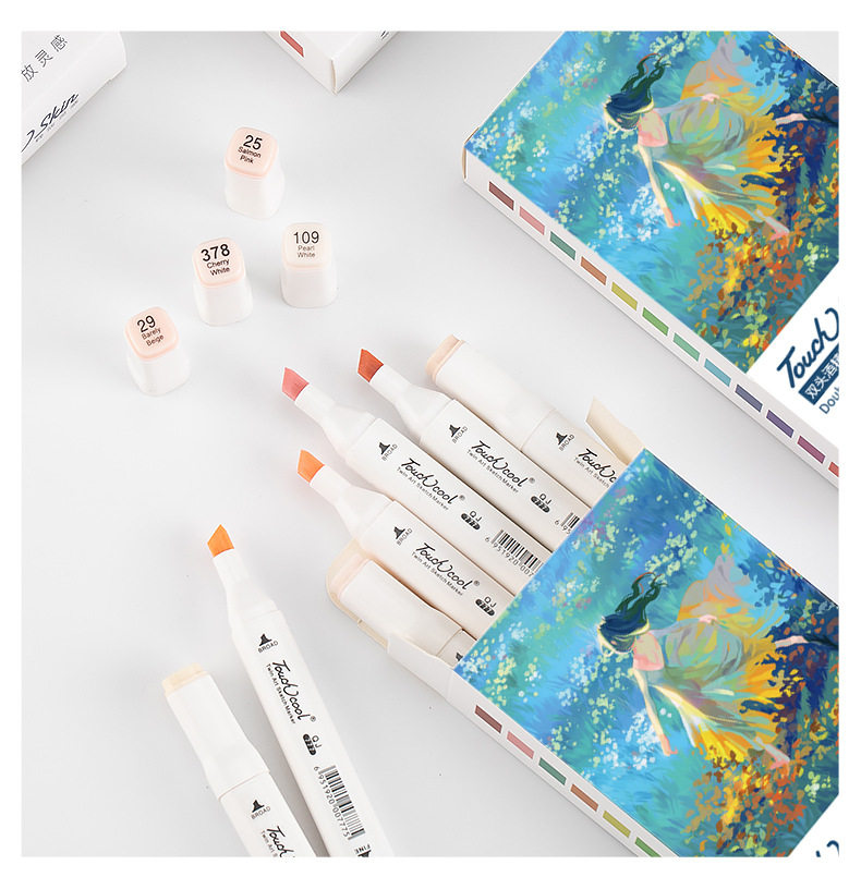肤色马克笔学生美术专用无毒可水洗画画笔双头水彩笔油性初中生动漫专用马克笔肉色皮肤色不透色速干涂鸦笔