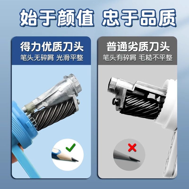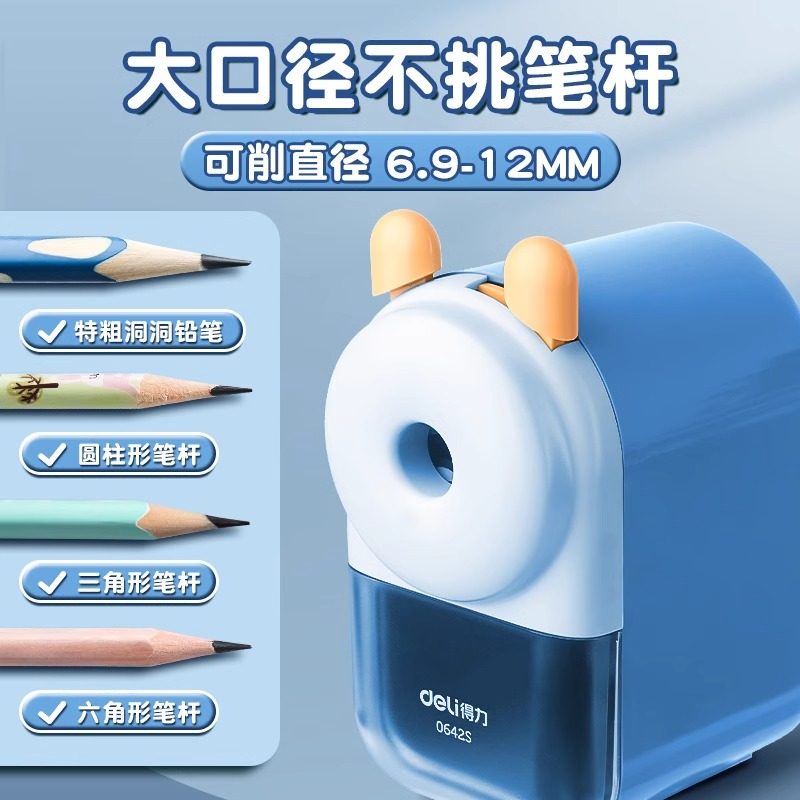得力卷笔刀大口径手摇转笔刀特粗洞洞笔加粗铅笔削笔器小学生专用铅笔刀儿童粗杆大三角铅笔卷笔刀转笔刀DZ
