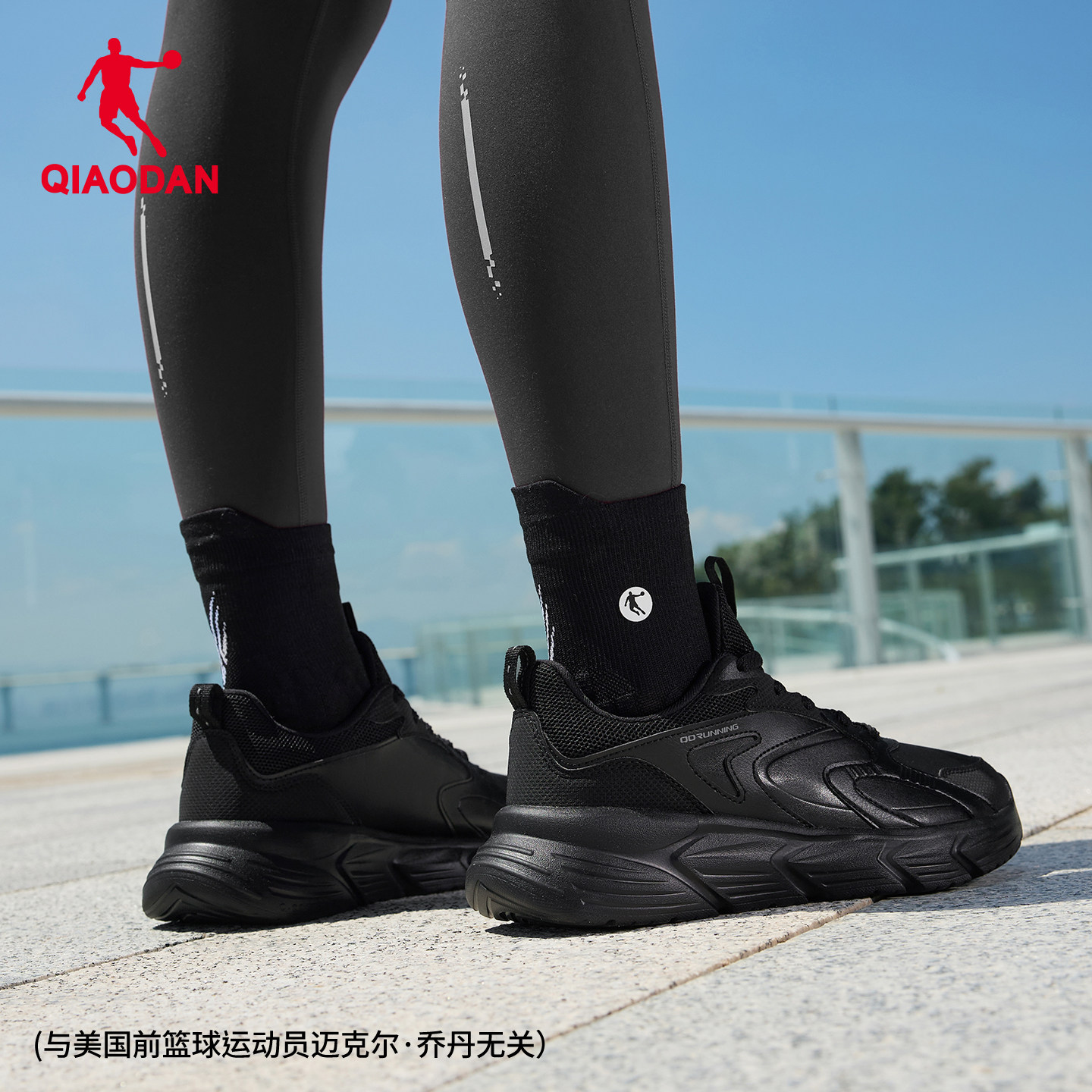 乔丹皮面黑色跑步鞋女新款运动鞋冬季防水跑鞋软底轻便妈妈休闲鞋