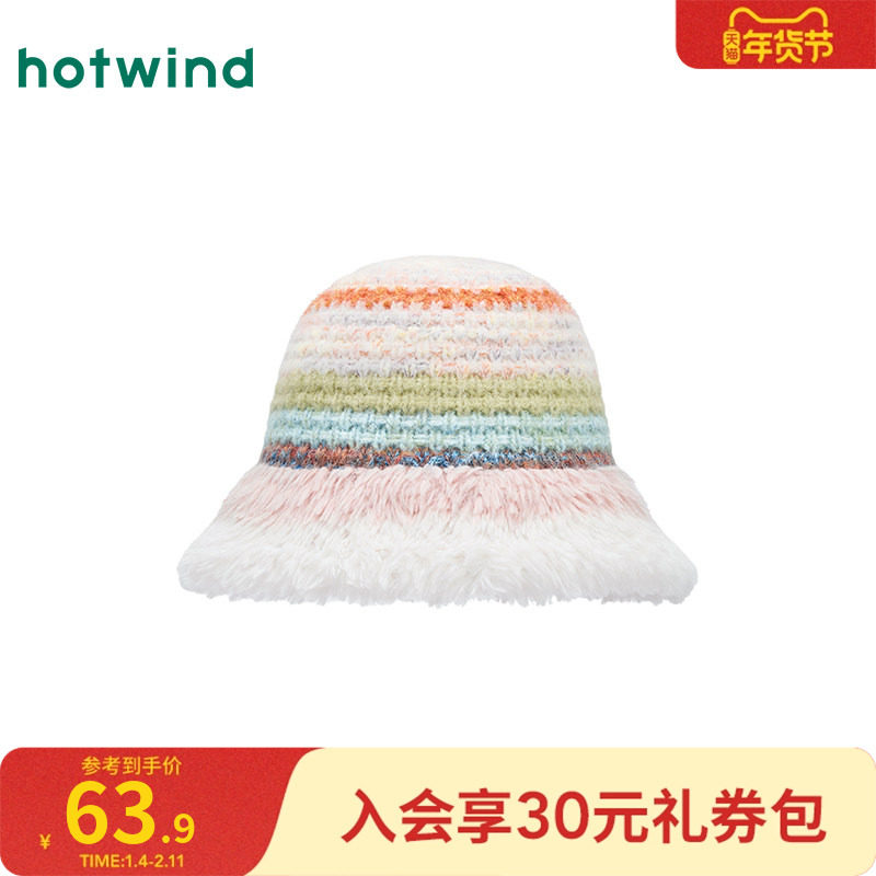 热风女士帽子2025年冬季新款条纹拼接厚盆帽撞色条纹保暖毛绒盆帽