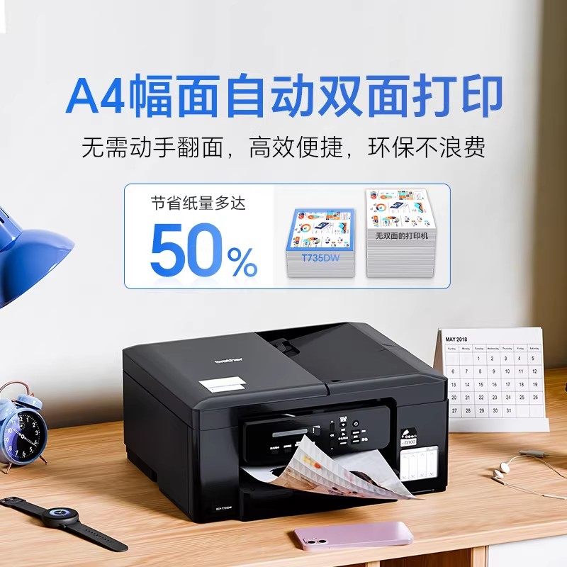 兄弟彩色打印机DCP-735dw连供墨仓式手机无线彩印照片学生喷墨复印扫描一体机小型家用办公专用435W T436W