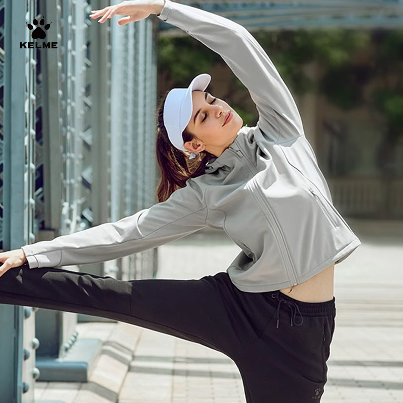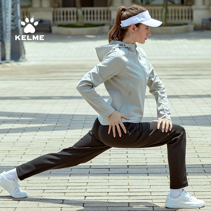 KELME卡尔美运动训练风衣梭织外套女冬季休闲开衫加绒软壳衣冲锋